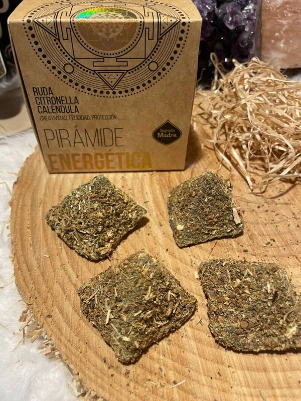 Descubre la poderosa combinación de la Pirámide Energética de Citronella, Caléndula y Ruda, una creación hecha a mano que representa el símbolo del fuego y la milenaria Geometría Divina de la raza humana. Esta pirámide es un conector entre el mundo celestial y terrenal, canalizando la energía del Sol, fuente de vida y transformación, para impregnar tu ambiente con poder cósmico.