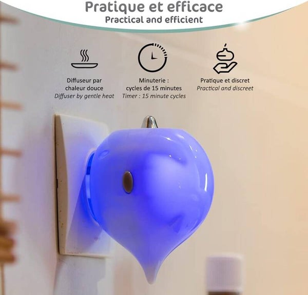 El difusor Innobiz Pluglia es un dispositivo de calor suave diseñado para difundir tus aceites esenciales de manera suave y ligera. Con su calor controlado, respeta y preserva los beneficios de tus aceites esenciales, creando una atmósfera luminosa relajante con luz azulada.