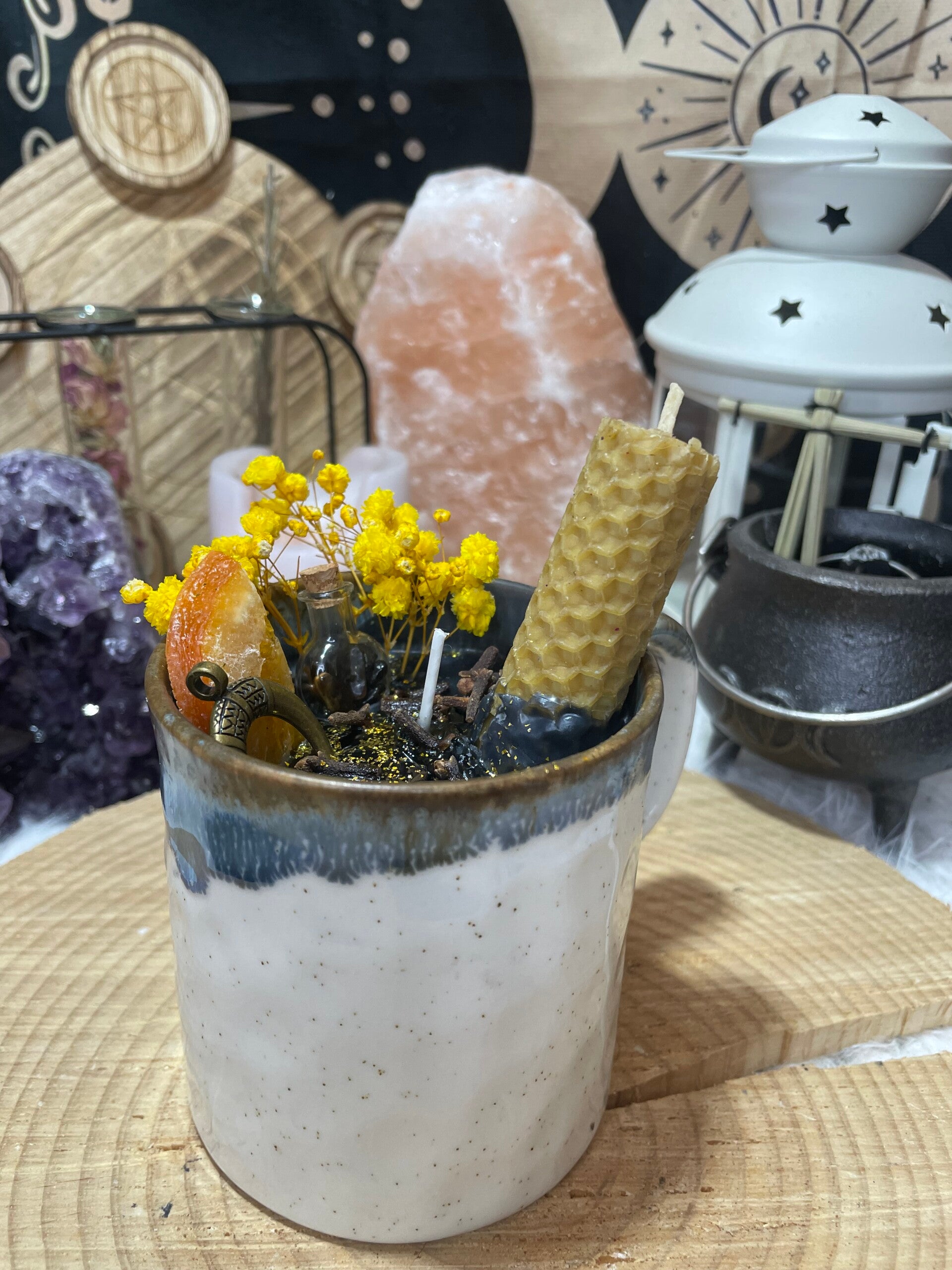 Sumérgete en la magia de nuestra Vela de Soja Negra en Taza y deja que la esencia de la prosperidad, protección y éxito llene tu hogar. ¡Adquiere la tuya ahora y experimenta la magia que hemos creado para ti!