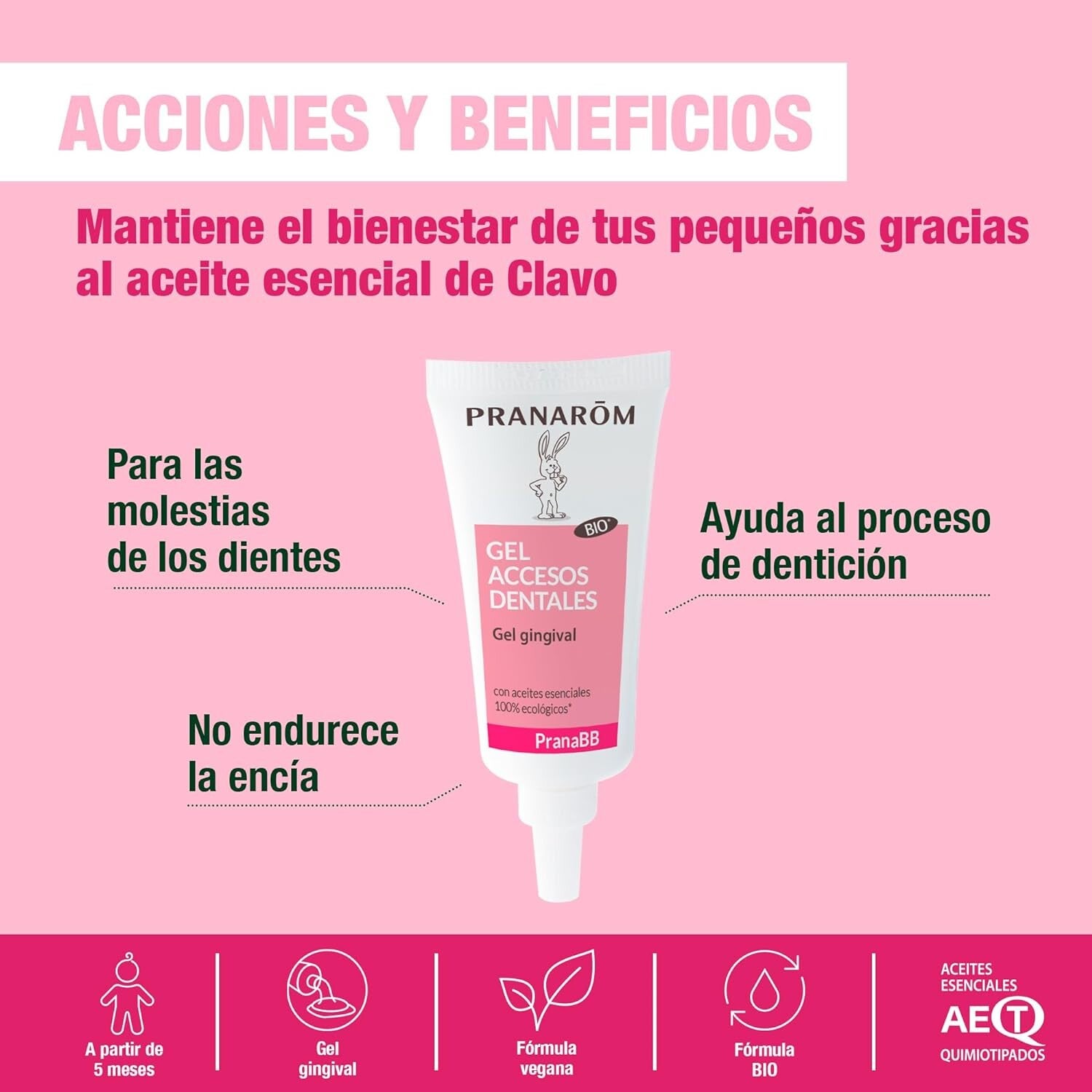 Aprovecha las propiedades beneficiosas de nuestro Gel Accesos Dentales - Gel Gingival Bio y brinda alivio a tu bebé de manera natural. ¡Compra ahora y experimenta el bienestar que mereces!
