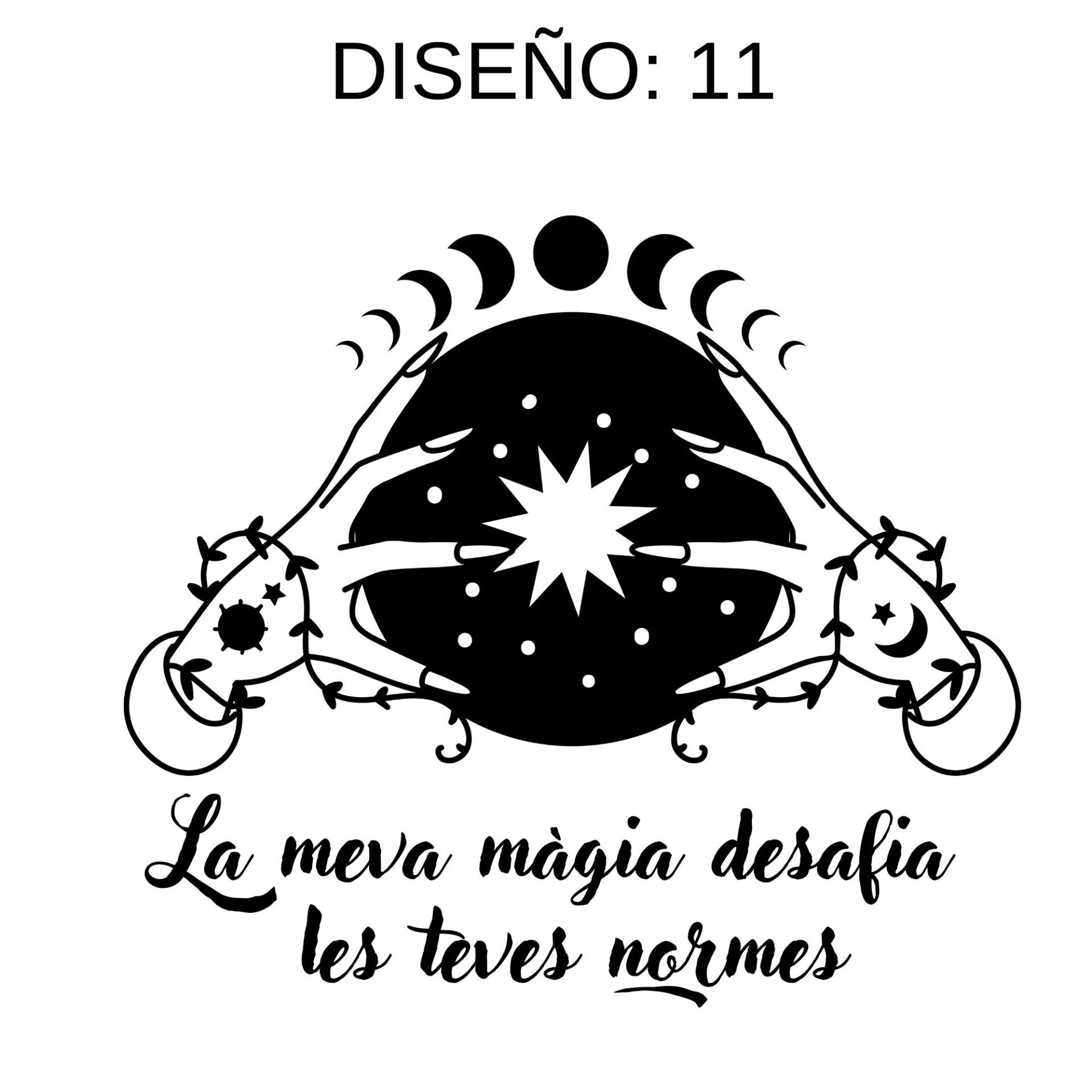 Selecciona tu Diseño: Explora nuestra galería de diseños y elige el que más te inspire. Desde pentagramas hasta citas célebres de brujas, hay algo para cada estilo y gusto.