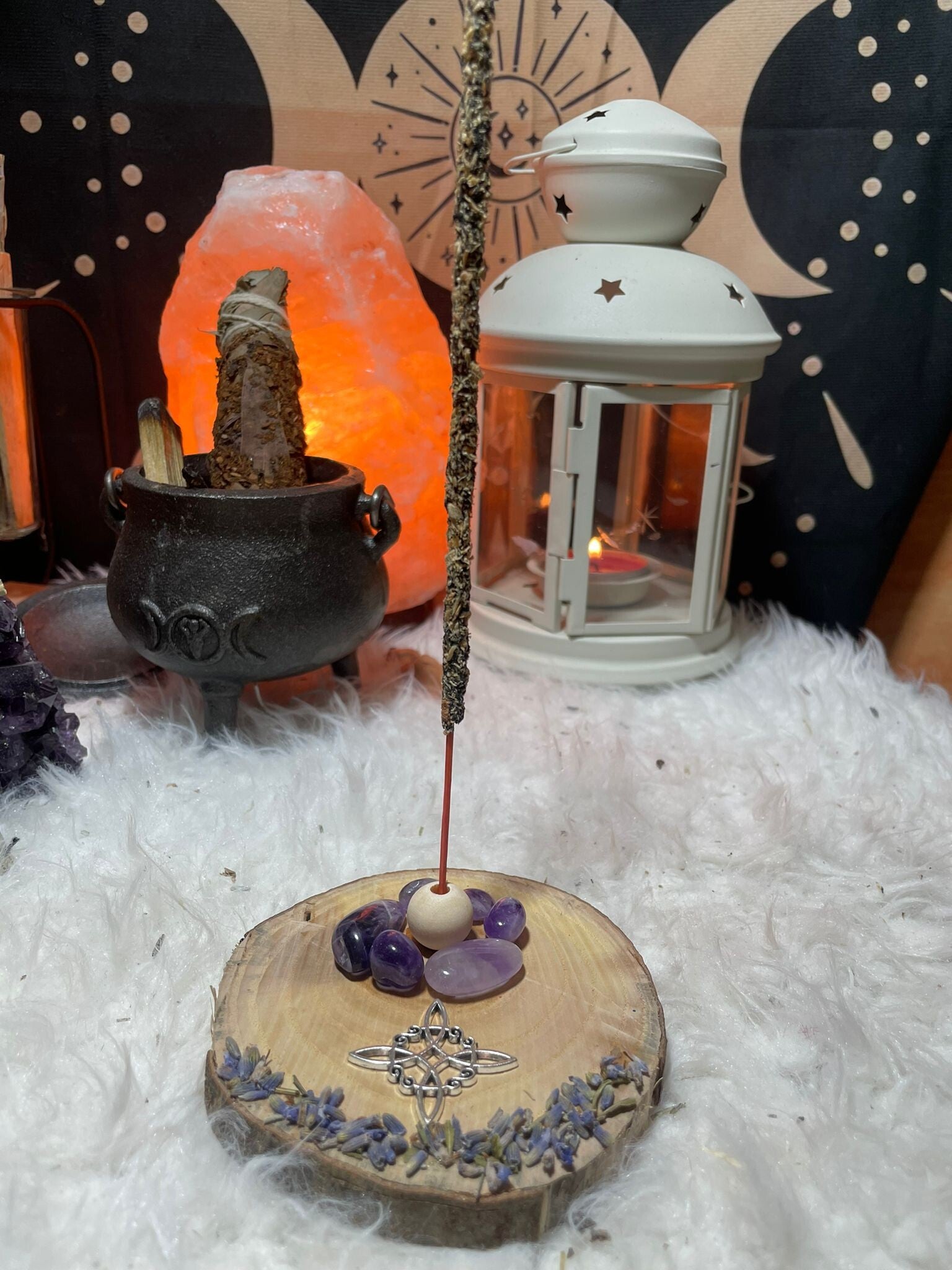 Porta Incienso Artesano con Lavanda, Amatista y Nudo de Brujas