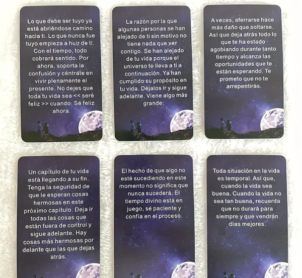 El Oráculo de los Mensajes del Universo es una herramienta poderosa para recibir sabiduría y guía directamente del cosmos. A través de sus cartas, podrás acceder a los mensajes que el universo tiene para ti, ofreciéndote claridad, apoyo y reflexión en cada momento de tu vida.