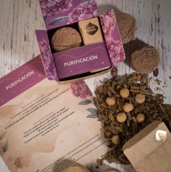 Cuando el humo sagrado se expande en el ambiente, el jazmín eleva la vibración e inspira amor, el copal limpia y sana profundamente, la salvia armoniza y el palo santo recarga con su energía sagrada.
