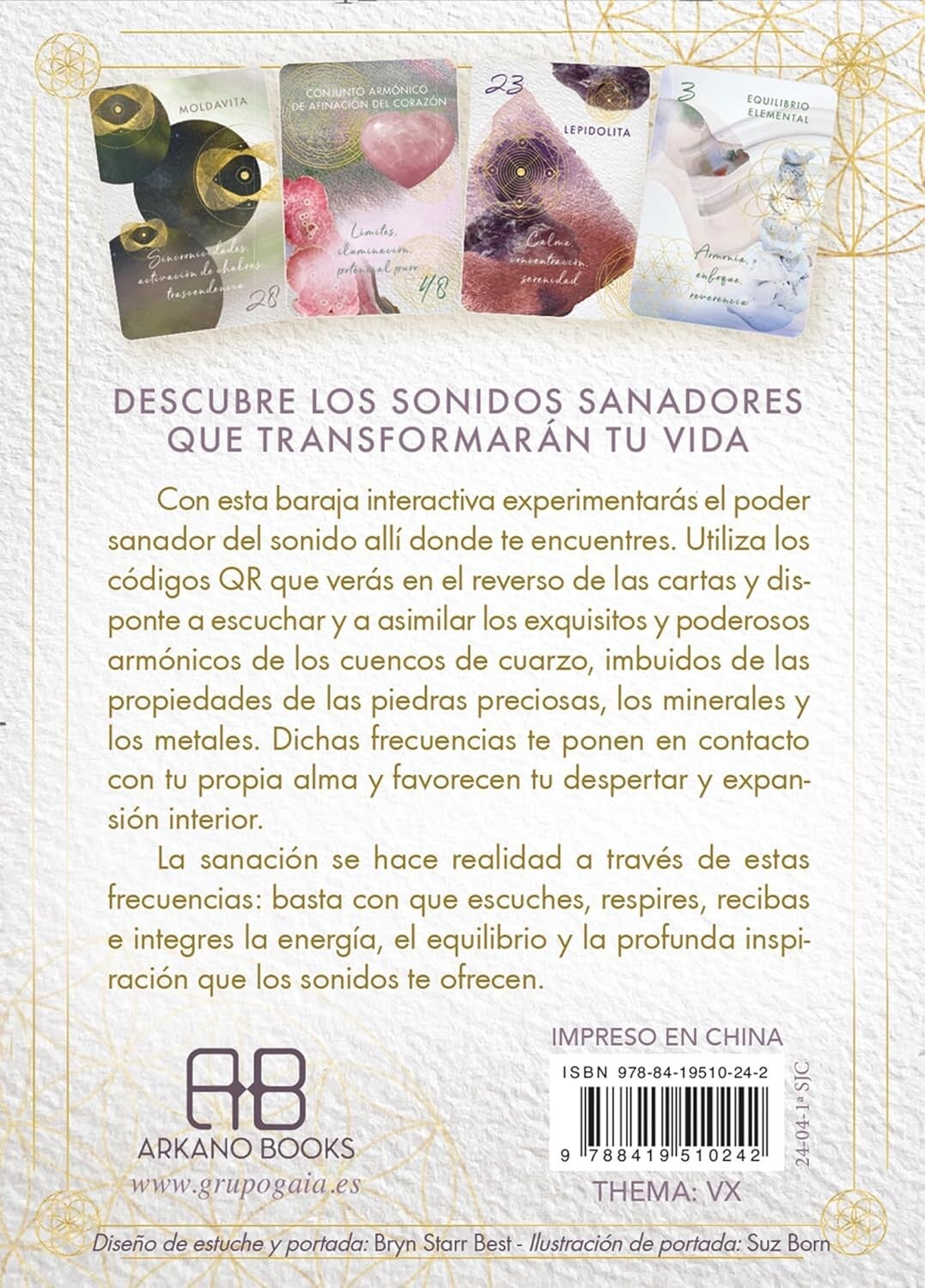 48 cartas vibracionales + libro guía + códigos QR con cuencos de cuarzo