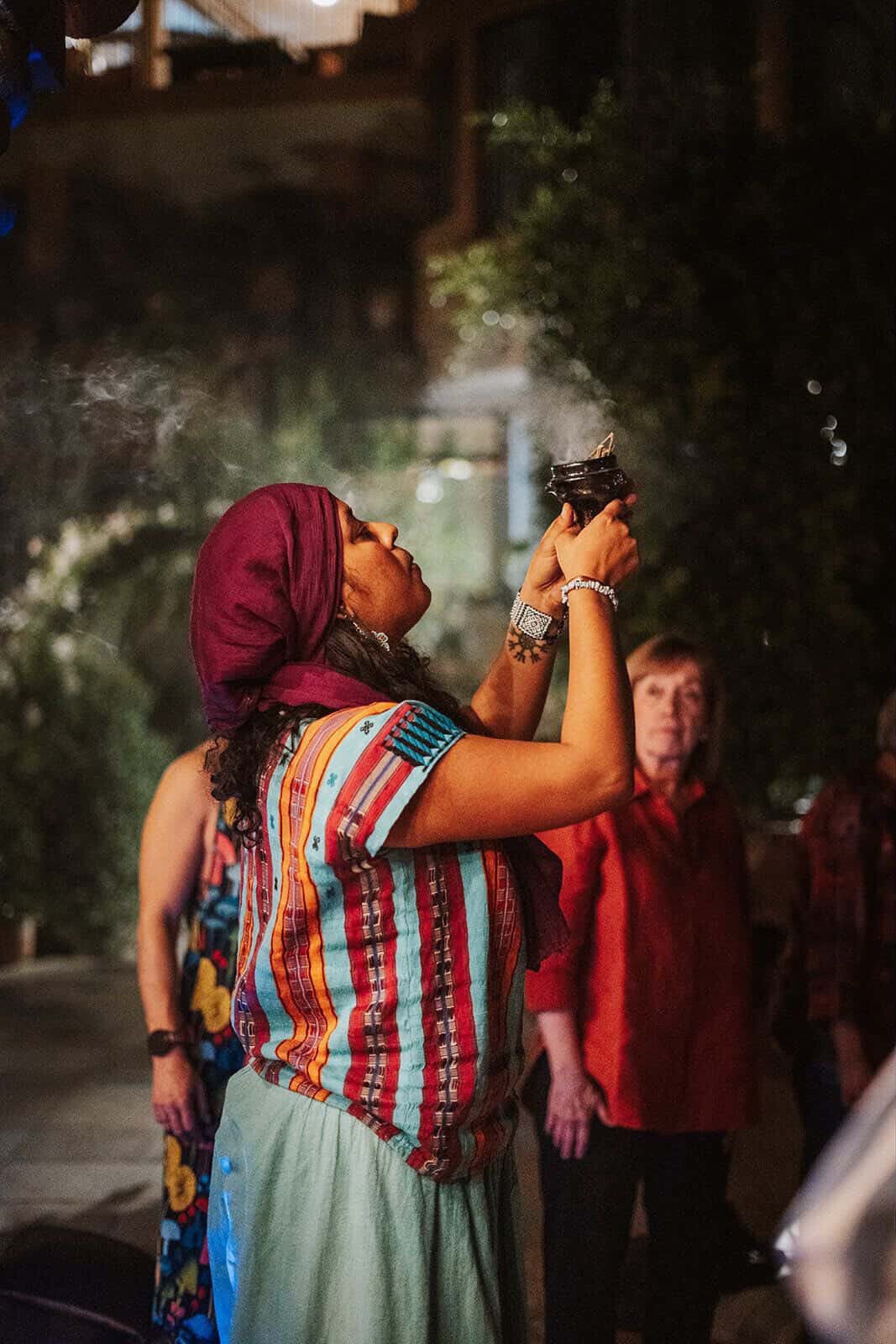 El espacio será purificado con humo sagrado, preparando el ambiente para el ritual.